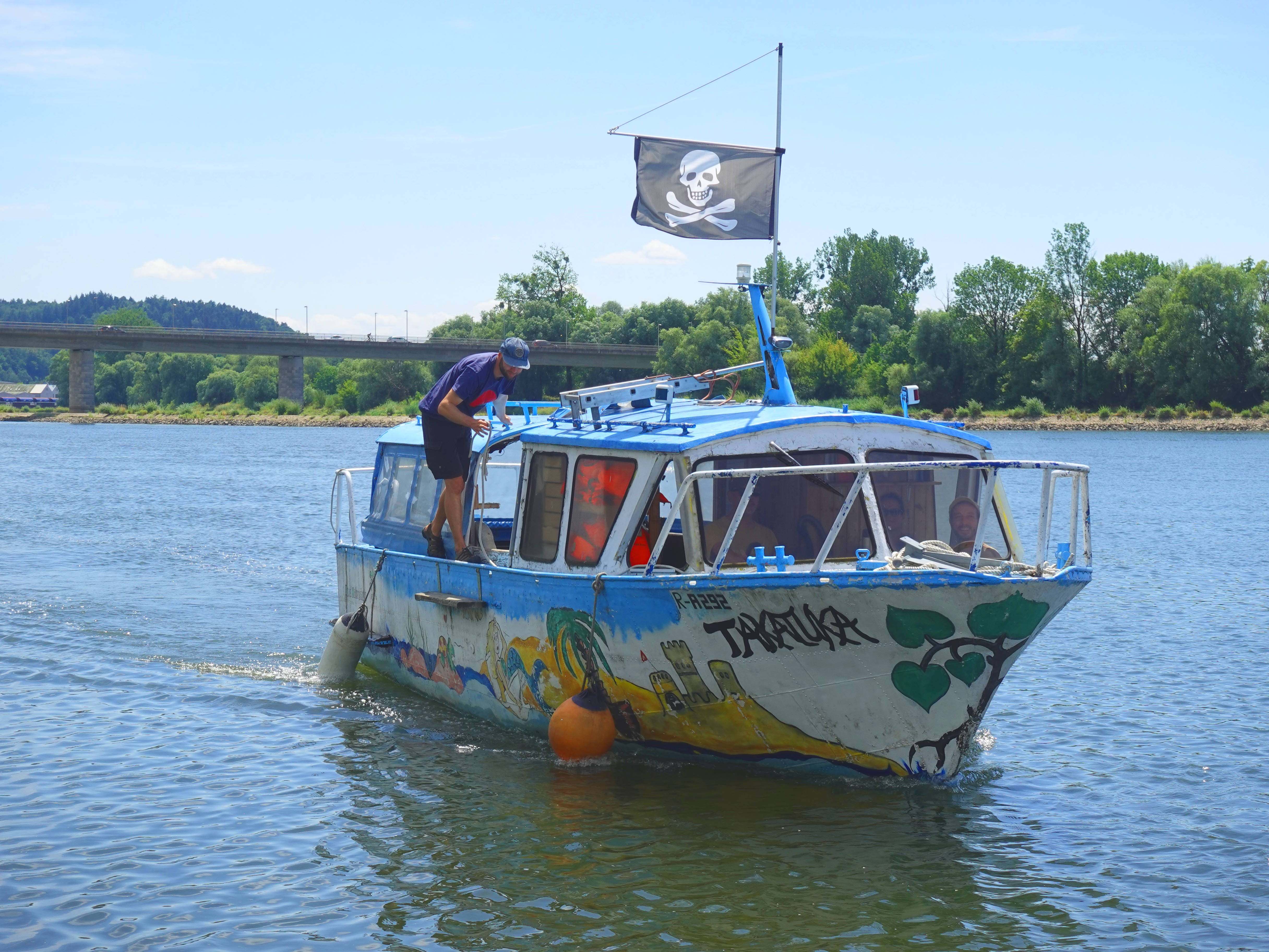 Zunächst stimmen sich die Teilnehmerinnen und Teilnehmer mit einigen Spielen auf das Thema Wasser und die bevorstehende Ausbildung für Donaupiraten ein. Nachdem diese erste Nagelprobe bestanden ist, setzt die Gruppe mit der TAKATUKA auf die Fischerdorfer DonauInsel über. Dort gelandet, verwandeln sich alle auch äußerlich in Piratinnen und Piraten. Bevor es richtig zur Sache geht, erfahren die zukünftigen Donaupiraten erst einmal das Wichtigste über ihre Insel und ihren Fluss.